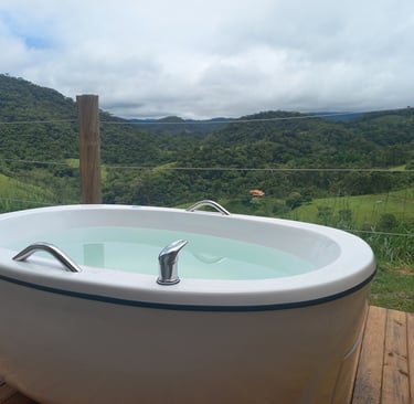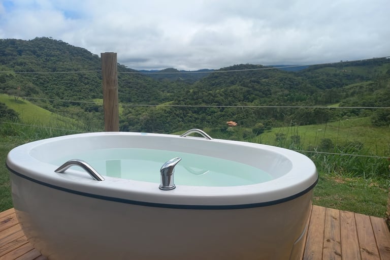 Cada suíte possui a sua banheira de imersão. As banheiras possuem registro para misturar agua quente e fria, mas não possuem jato de hidromassagem.