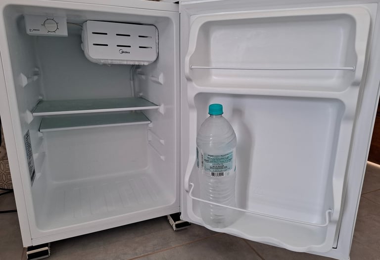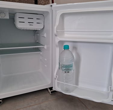 A suíte possui uma cama de casal box, Smart TV, ventilador de teto, mini copa com pia, frigobar e micro-ondas, banheiro privativo com chuveiro elétrico e secador de cabelo, possui também varanda privativa com banheira de imersão privativa. descriçao_suíte