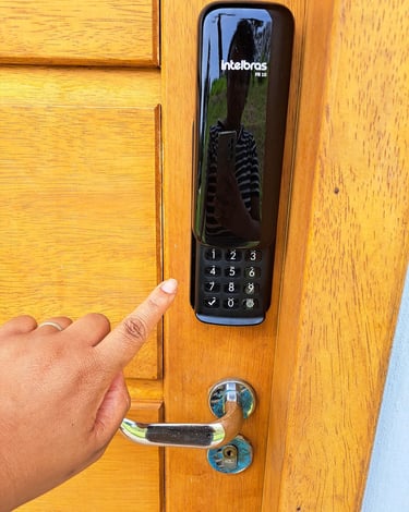 Todas suítes possuem fechadura eletrônica com senhas distintas. video_fechadura