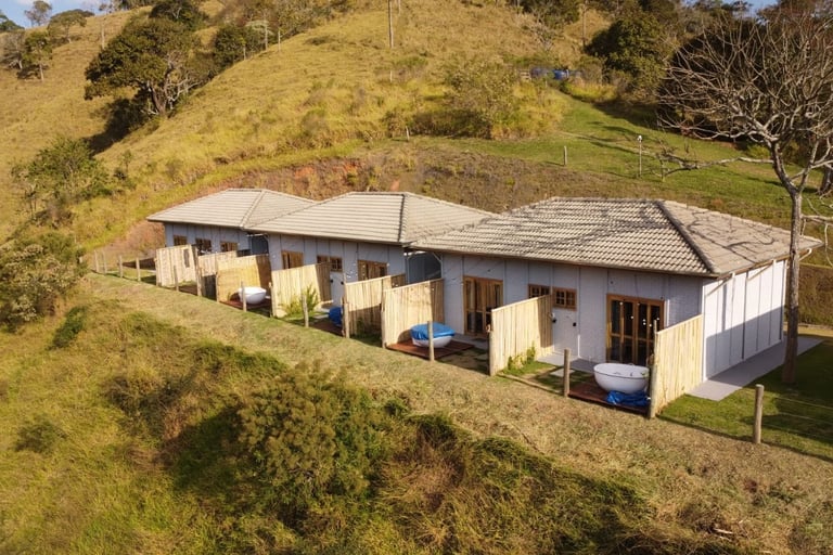 As suítes estão localizadas a 1.100 metros de altitude, mas existe uma trilha que leva o hóspede ao ponto mais alto da propriedade a 1.180 metros de altitude. Deste ponto é possível avistar a serra da Mantiqueira do lado de São Paulo e Minas Gerais. video_ponto_mais_alto e video_amanhecer